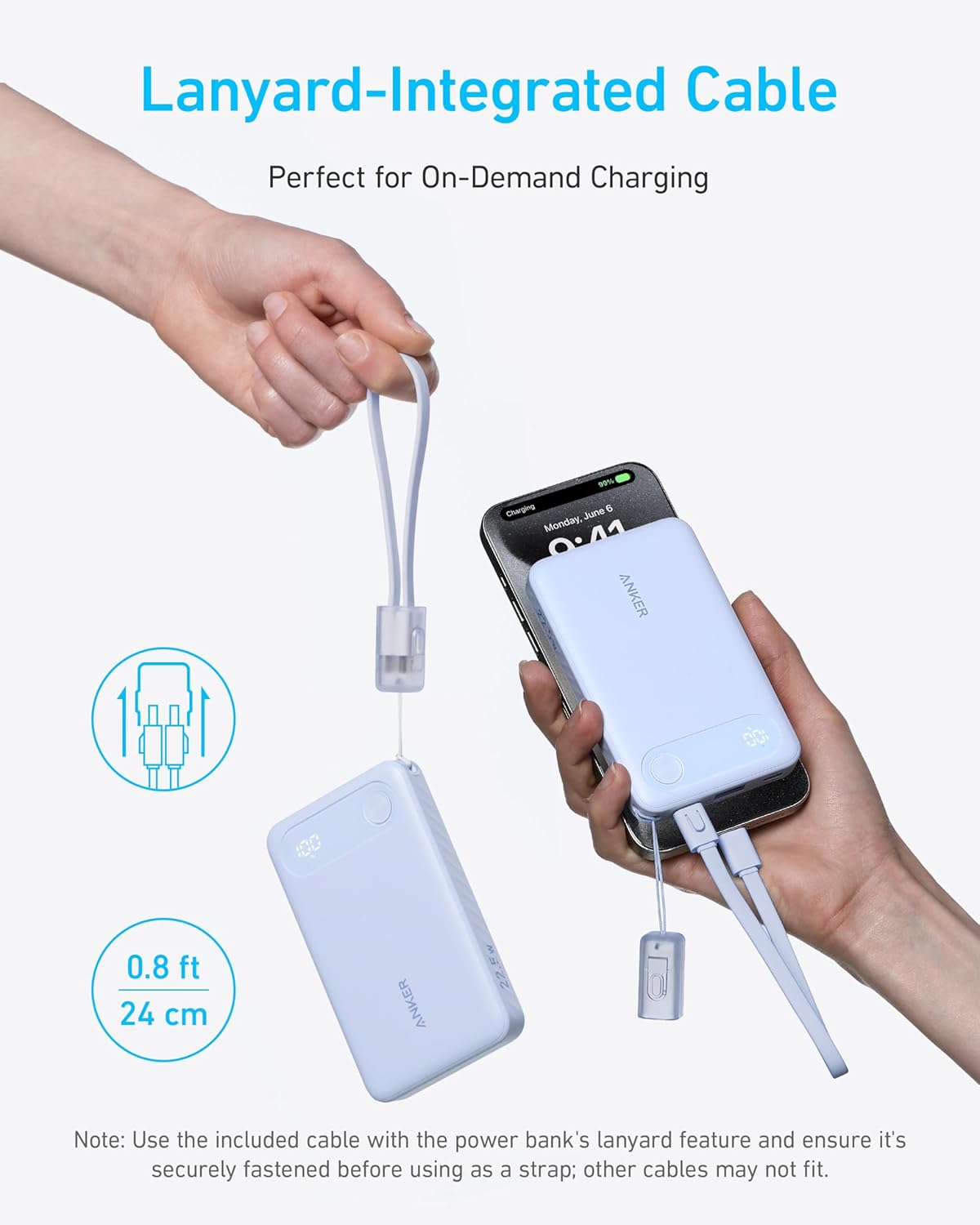 Anker Power Bank (10K, 30W, Built-In USB-C Cable) White